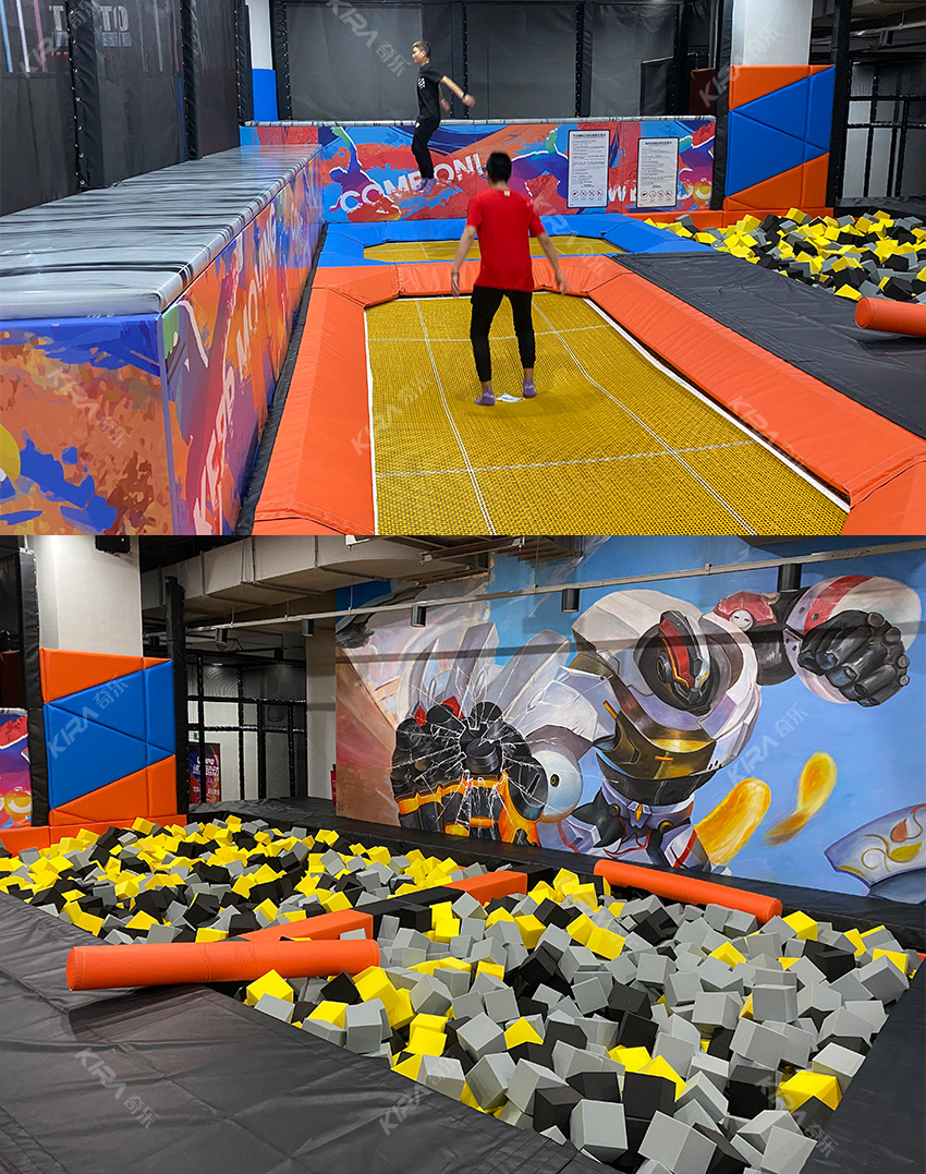 該運(yùn)動(dòng)公園主要以蹦床為主,另外還有攀爬拓展,鐳射對(duì)戰(zhàn),VR互動(dòng),自由蹦床,扣籃蹦床區(qū)等等這種一蹦床為主,多種游樂(lè)項(xiàng)目結(jié)合的運(yùn)動(dòng)公園,是當(dāng)下非常受年輕人喜愛(ài)的。