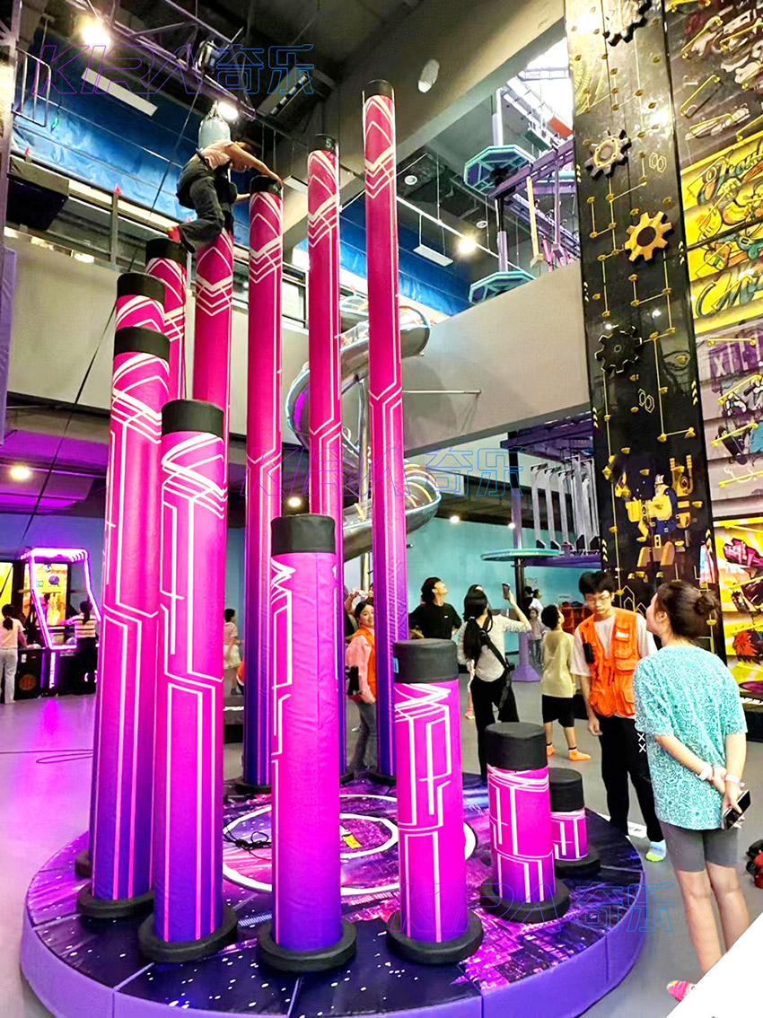 外層設(shè)計了驚險刺激的波浪滑梯、魔鬼滑梯,彈跳迷宮中,則有各種趣味好玩的闖關(guān)游戲如森林探寶、繩網(wǎng)迷宮、大擺錘、蕩木秋千等,可以激發(fā)孩子們的探索興趣,有利于孩子的身心成長。