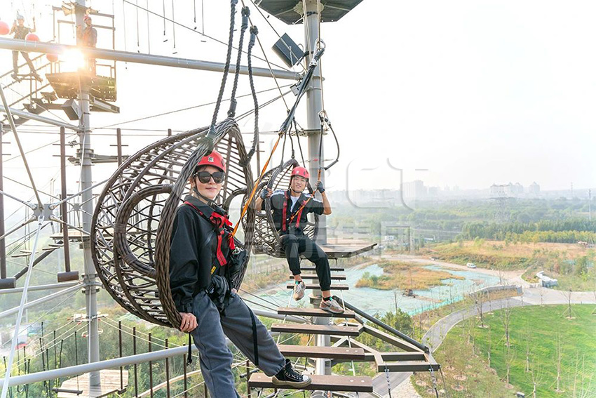 九月底,全亞洲最大的探險塔在北京溫榆河公園拔地而起,這座總高度29.8m,共設(shè)6層,能同時滿足兩百多位游客探險挑戰(zhàn)的探險塔,設(shè)備占地面積約1100平方米,開啟全新潮流生活方式,成為北京市民一種新的時尚戶外活動。