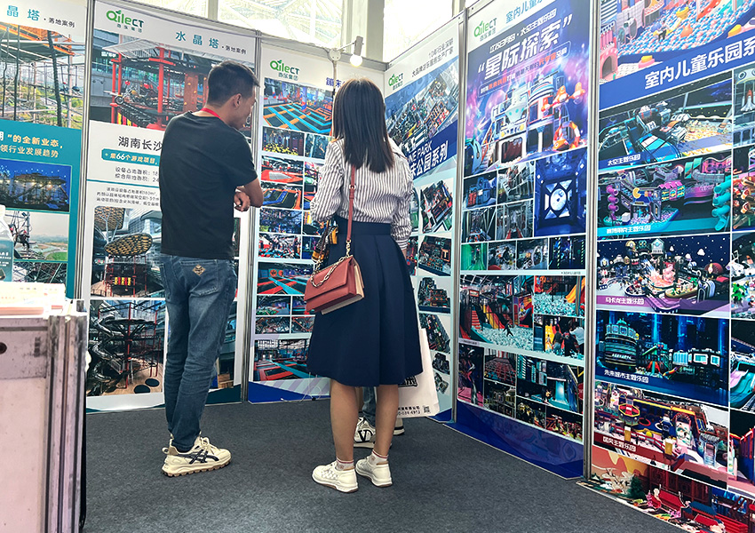 此次展會(huì)我司推出了一批有特色的創(chuàng)新產(chǎn)品。比如新一代IP主題探險(xiǎn)水晶塔、奇樂(lè)戶外奇幻星球系列產(chǎn)品、升級(jí)版水晶塔、鉆石塔、新融合概念室內(nèi)樂(lè)園、潮流主題運(yùn)動(dòng)蹦床公園等。