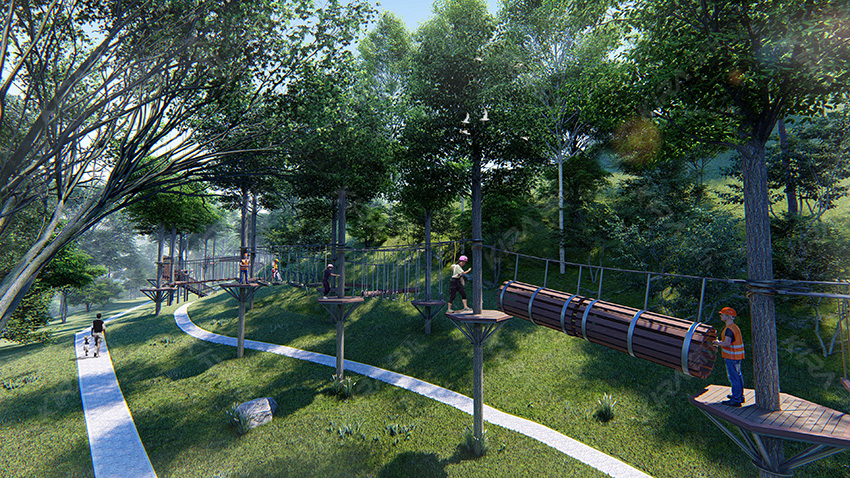本項(xiàng)目適用于各種親子主題類的樂(lè)園,巧妙運(yùn)用“熊貓”IP造型設(shè)計(jì),集拓展、探險(xiǎn)、滑道、飛索、蹦極、不銹鋼滑梯、攀巖、爬網(wǎng)等46種不同運(yùn)動(dòng)體驗(yàn)的文化主題項(xiàng)目,結(jié)合“大灰熊”IP形象,融入相關(guān)設(shè)計(jì)元素,打造差異化的網(wǎng)紅IP主題性運(yùn)動(dòng)拓展?fàn)I地綜合體。