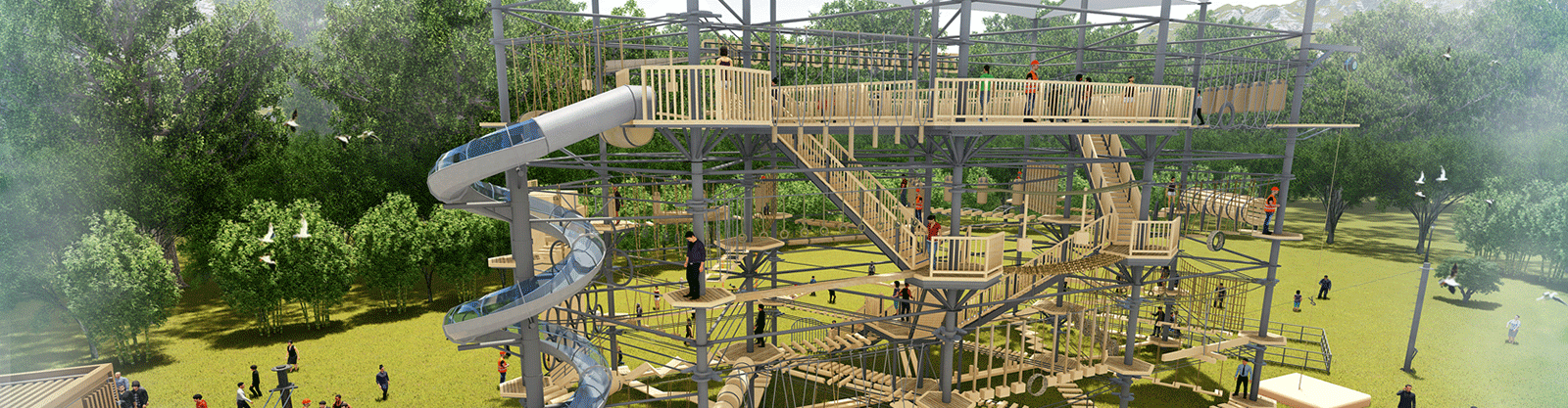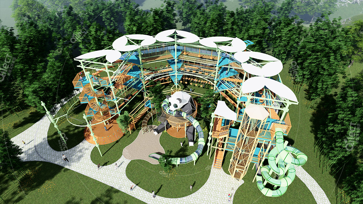 本項目適用于各種親子主題類的樂園,巧妙運(yùn)用“大灰熊”IP造型設(shè)計,集拓展、探險、滑道、飛索、蹦極、不銹鋼滑梯、攀巖、爬網(wǎng)等46種不同運(yùn)動體驗的文化主題項目,結(jié)合“大灰熊”IP形象,融入相關(guān)設(shè)計元素,打造差異化的網(wǎng)紅IP主題性運(yùn)動拓展?fàn)I地綜合體。